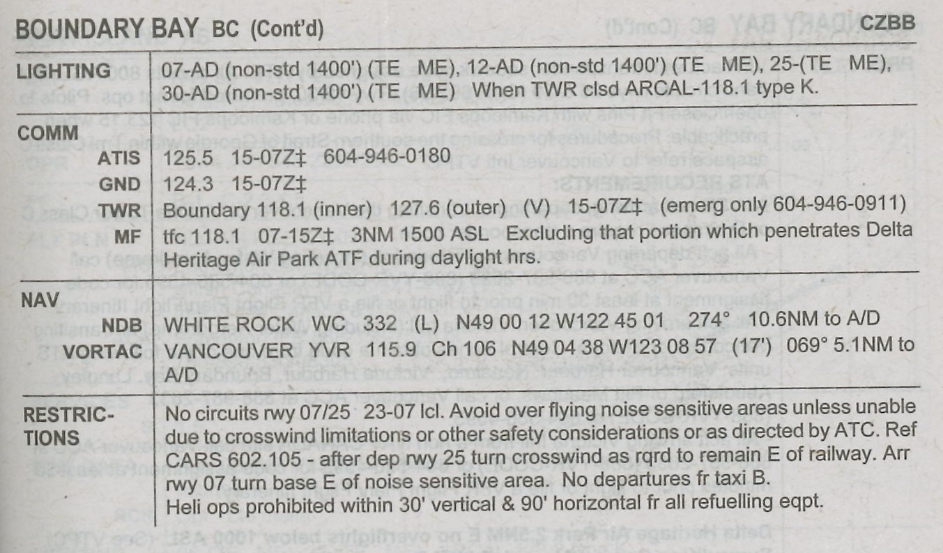 Boundary Bay Airport (Canada Flight Supplement), Langley Flying School.