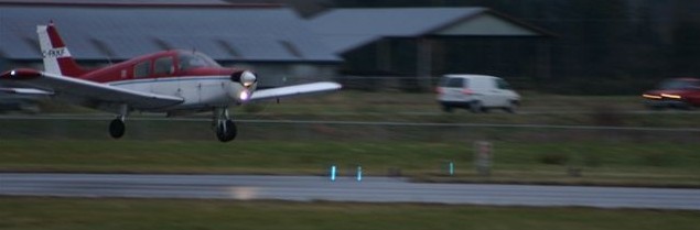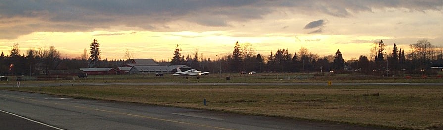 Under normal circumstances, the aircraft heading should reference the runway projected centreline, adjusting for crosswind. On a RWY 19 departure, noise abatement procedures require a smooth left turn to a heading of approximately 150° so that the aircraft will depart over the green strip (away from housing).