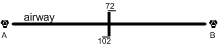 Normally the radio aid used for tracking an airway is changed between the anchoring facilities at the half-way mark. Where this changeover point is different, it is marked as indicated below.. En route from VOR A to VOR B, the VOR A is selected until the 102-NM mark is reached, and then VOR B is selected.